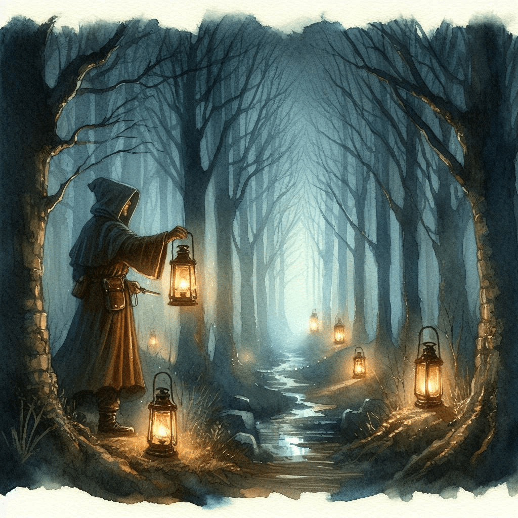 Once, in a quiet village nestled deep within a vast forest, there lived an old woman named Mara, known to everyone as the Lantern Keeper. She was a gentle soul who, year after year, lit lanterns that lined the paths through the forest, guiding travelers safely through the darkness. Her lanterns had become a symbol of hope for the villagers, for no matter how deep the night or how thick the fog, her light would always be there to show the way.